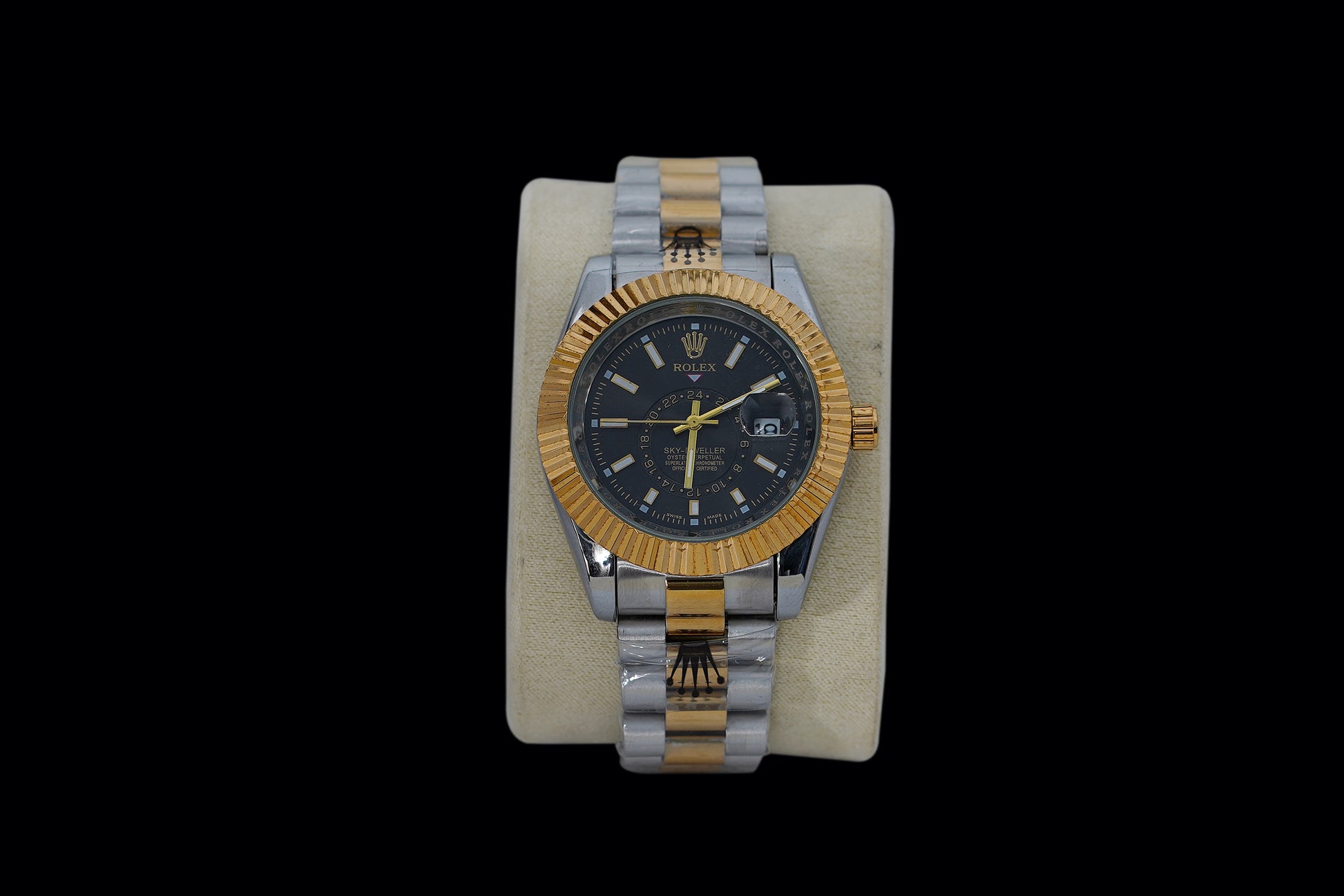 Rolex premium automatic movement silver with black dial.